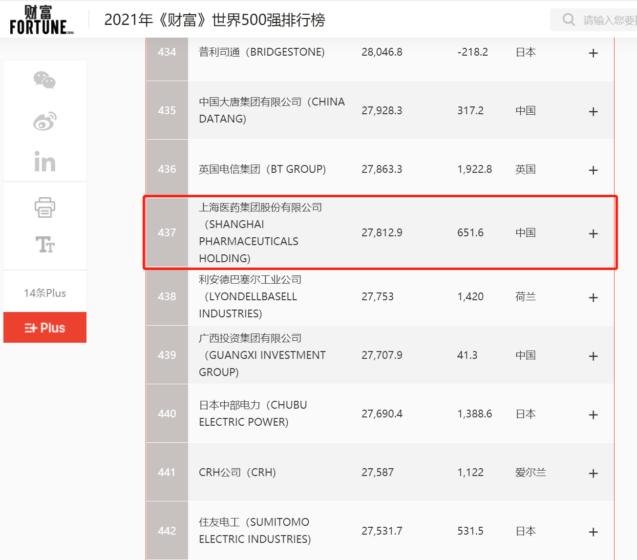 2021年8月2日,《財富》雜志正式發(fā)布“2021年《財富》世界500強排行榜單”,上海醫(yī)藥集團股份有限公司(601607.SH,02607.HK,以下簡稱“上海醫(yī)藥”)再次上榜,位列第437位。這也是繼2020年首次入選后,上海醫(yī)藥再度憑借自身實力強勢登榜,排名躍升36位。